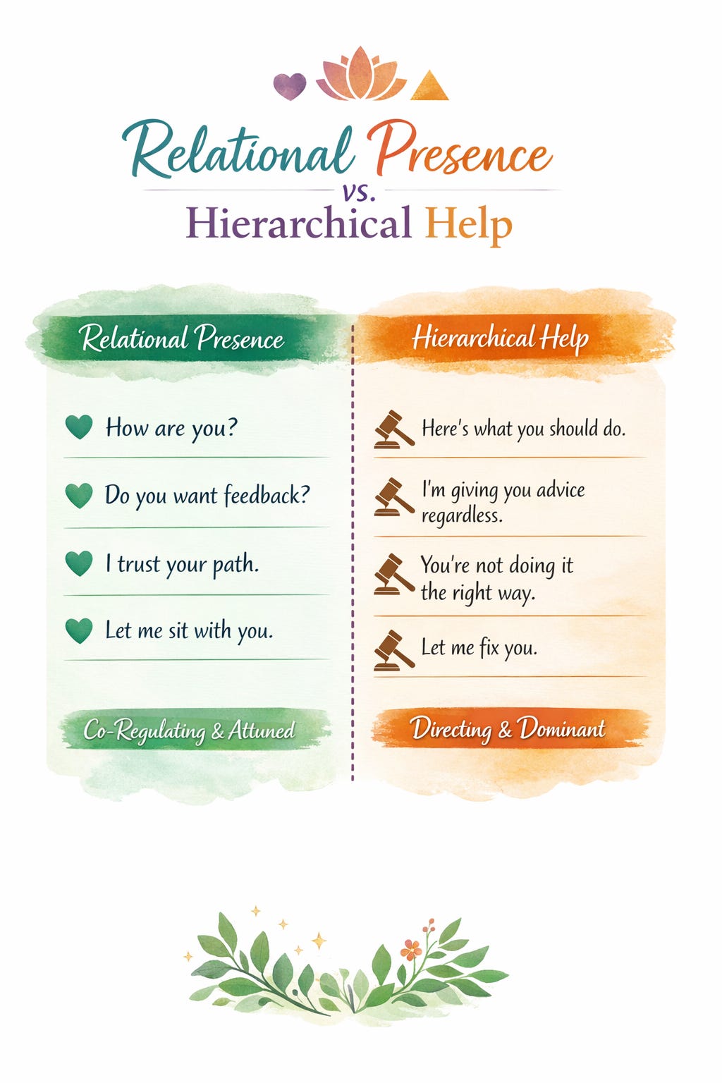 Relational presence offers attunement, curiosity, and space.